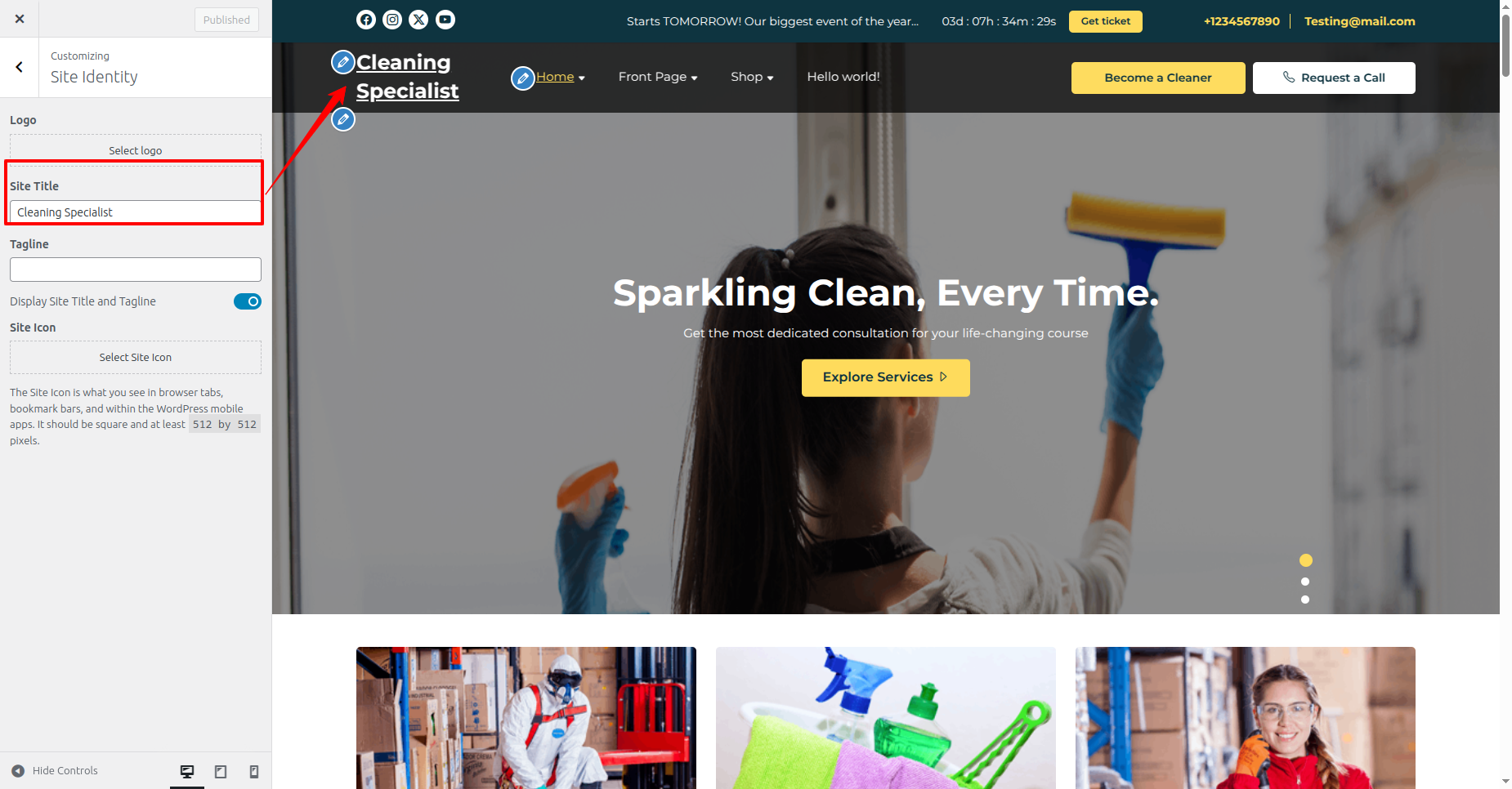 First Move ~ Refer to the "Dashboard" ~> then pick "Appearance" ~> afterwards "Customizing" ~> and finally arrive at the "Site Identity" ~> simply press "Published" .