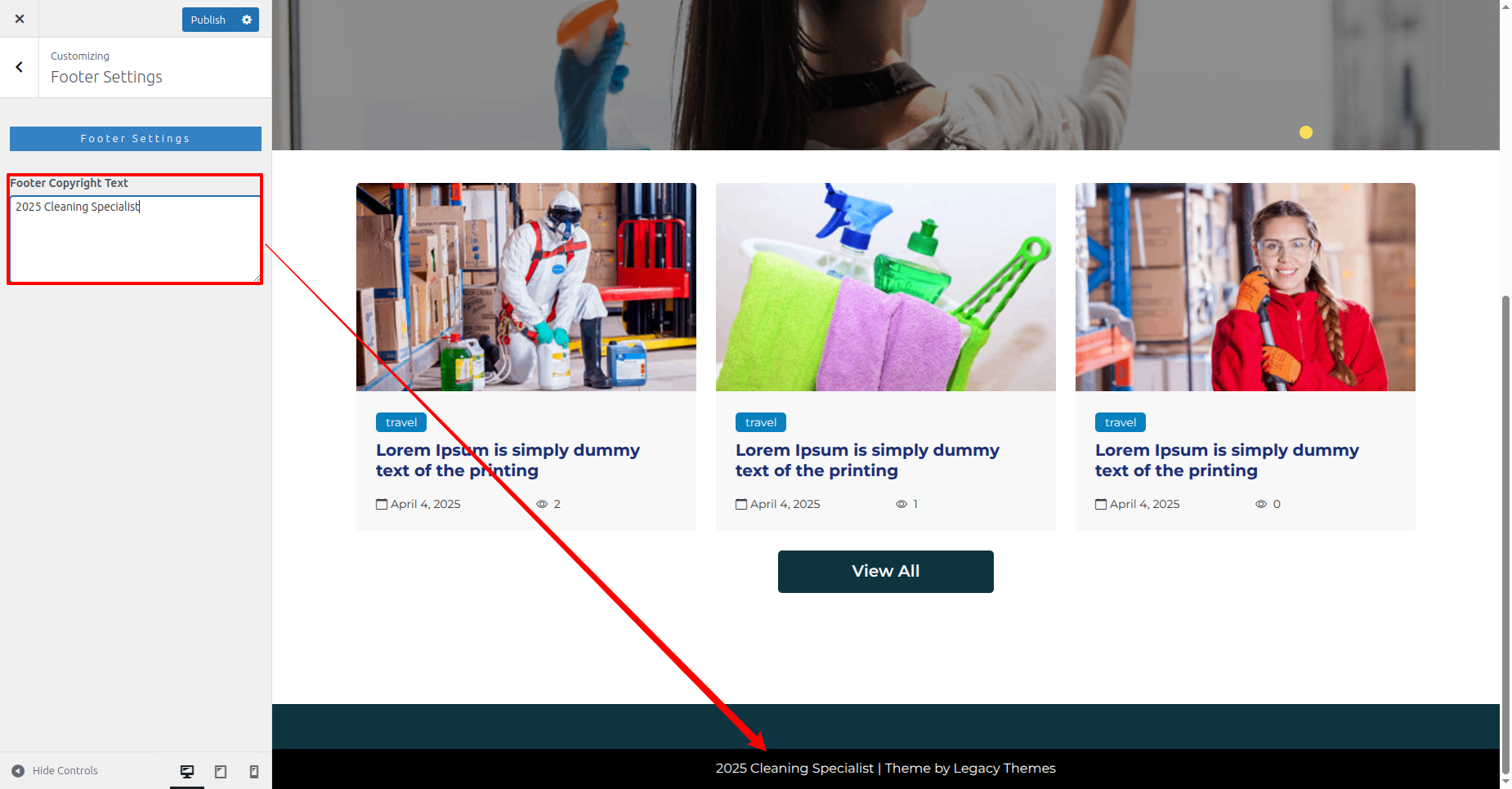 First Move ~ Refer to the "Dashboard" ~> then pick "Appearance" ~> afterwards "Customizing" ~> and finally arrive at the "Footer Settings" ~> simply press "Published" .