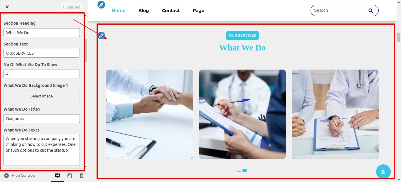 First Move ~ Refer to the "Dashboard" ~> then pick "Appearance" ~> afterwards "Customizing" ~> then Jump to "Theme Settings" ~> and finally arrive at the "What We Do" ~> simply press "Published" .