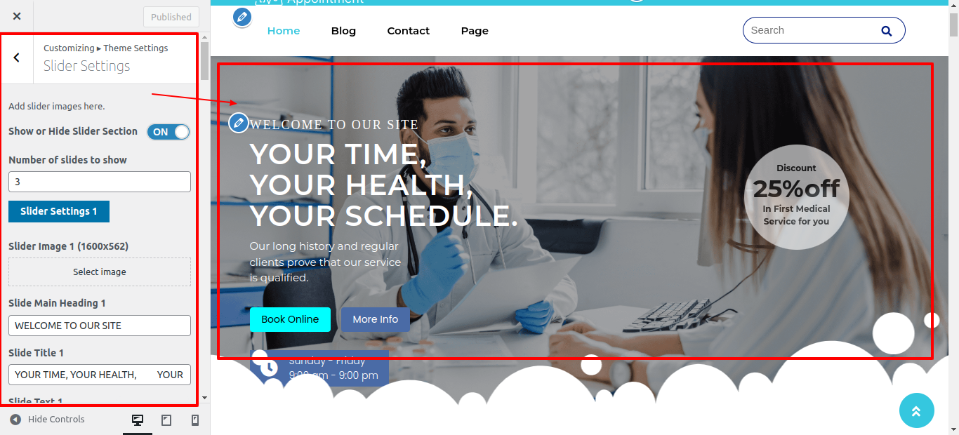 First Move ~ Refer to the "Dashboard" ~> then pick "Appearance" ~> afterwards "Customizing" ~> then Jump to "Theme Settings" ~> and finally arrive at the "Appointment" ~> simply press "Published" .
