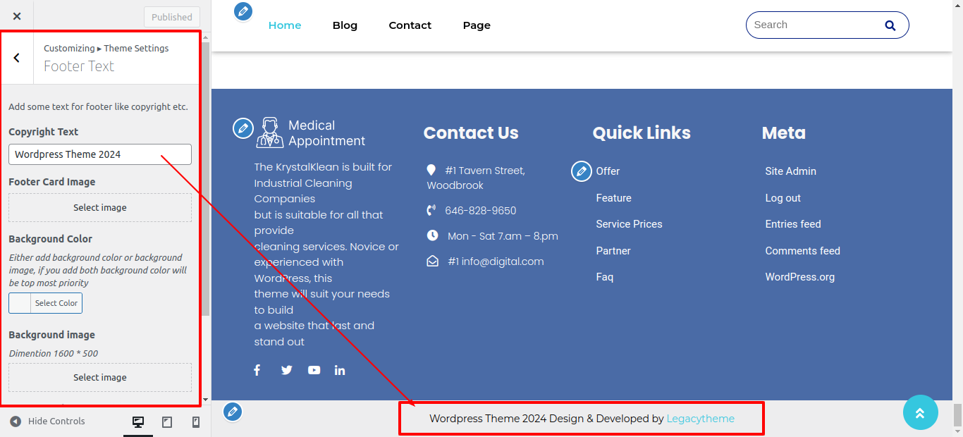 First Move ~ Refer to the "Dashboard" ~> then pick "Appearance" ~> afterwards "Customizing" ~> then Jump to "Theme Settings" ~> and finally arrive at the "Footer Text" ~> simply press "Published" .