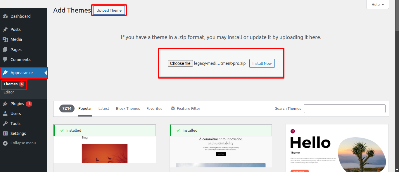 As a final resort, you can use the FTP method to upload. primarily open your FTP customer, sign in, and explore the files to find wp-content beforehand deciding a theme. Afterwards, import the theme files to your personal computer and unzip them. subsequently transfer the file you extracted themes file to your server's "themes" file. The freshly downloaded template ought to be visible in the "Appearance" part within your the WordPress platform Dashboard after the upload is finished..