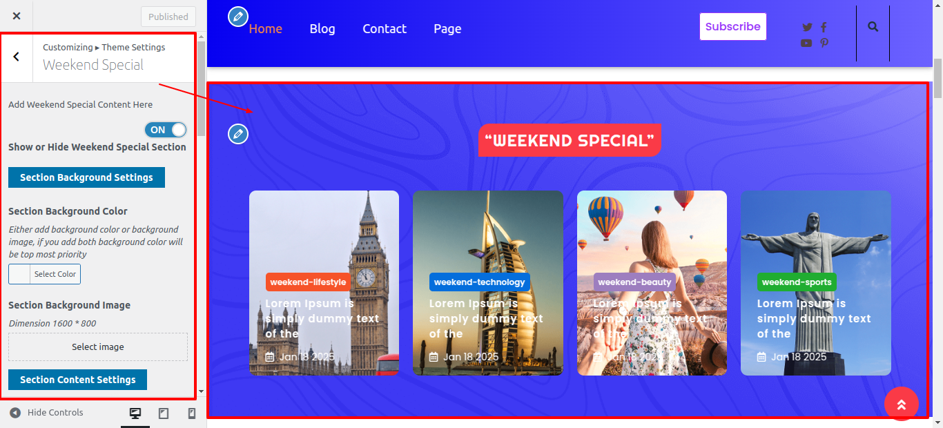 First Move ~ Refer to the "Dashboard" ~> then pick "Appearance" ~> afterwards "Customizing" ~> then Jump to "Theme Settings" ~> and finally arrive at the "Weekend Special" ~> simply press "Published" .