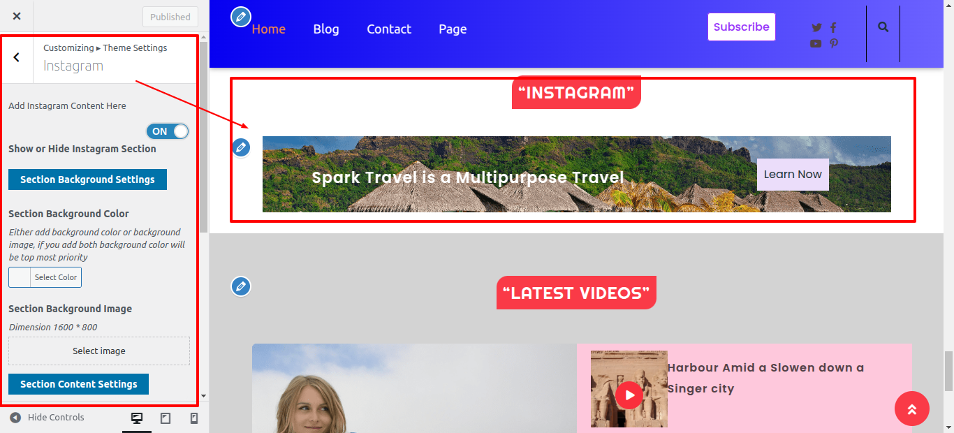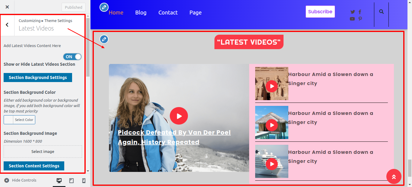 First Move ~ Refer to the "Dashboard" ~> then pick "Appearance" ~> afterwards "Customizing" ~> then Jump to "Theme Settings" ~> and finally arrive at the "Latest Videos" ~> simply press "Published" .