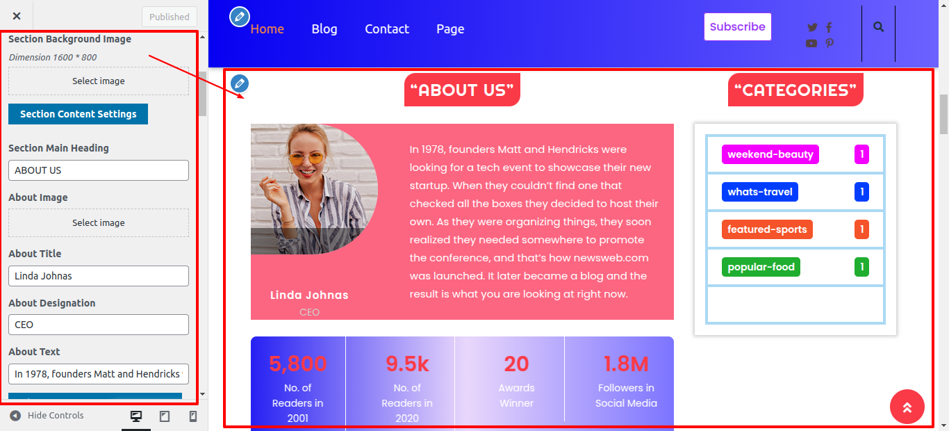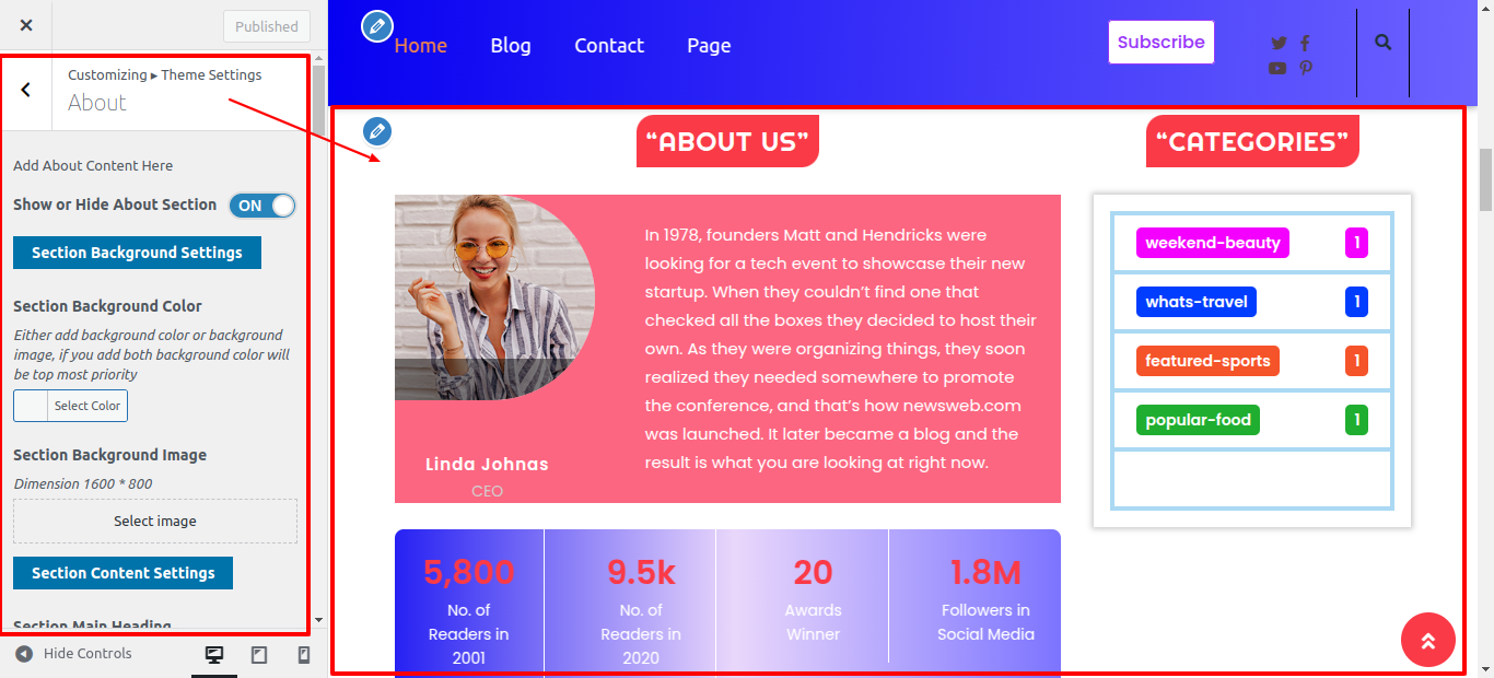 First Move ~ Refer to the "Dashboard" ~> then pick "Appearance" ~> afterwards "Customizing" ~> then Jump to "Theme Settings" ~> and finally arrive at the "About" ~> simply press "Published" .