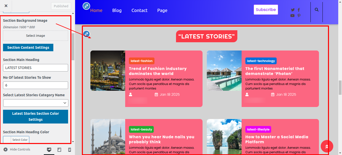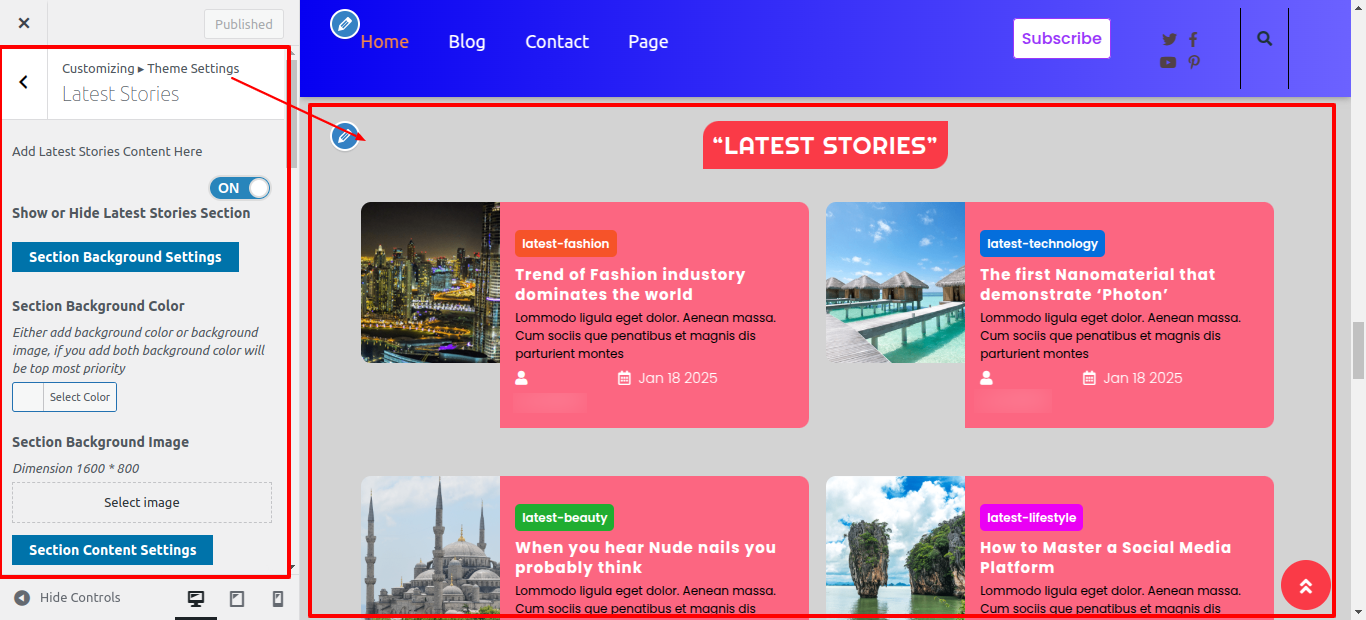 First Move ~ Refer to the "Dashboard" ~> then pick "Appearance" ~> afterwards "Customizing" ~> then Jump to "Theme Settings" ~> and finally arrive at the "Latest Stories" ~> simply press "Published" .