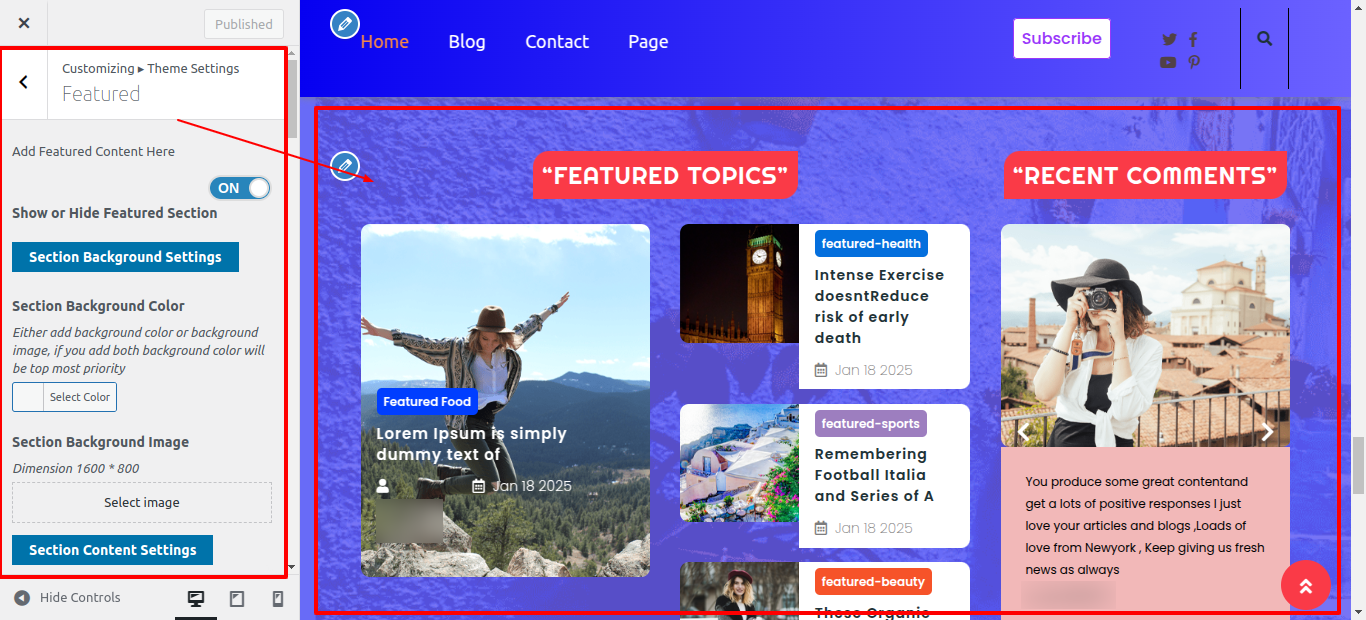 First Move ~ Refer to the "Dashboard" ~> then pick "Appearance" ~> afterwards "Customizing" ~> then Jump to "Theme Settings" ~> and finally arrive at the "Featured" ~> simply press "Published" .
