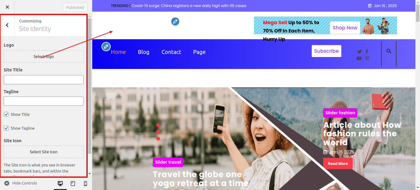 First Move ~ Refer to the "Dashboard" ~> then pick "Appearance" ~> afterwards "Customizing" ~> and finally arrive at the "Site Identity" ~> simply press "Published" .