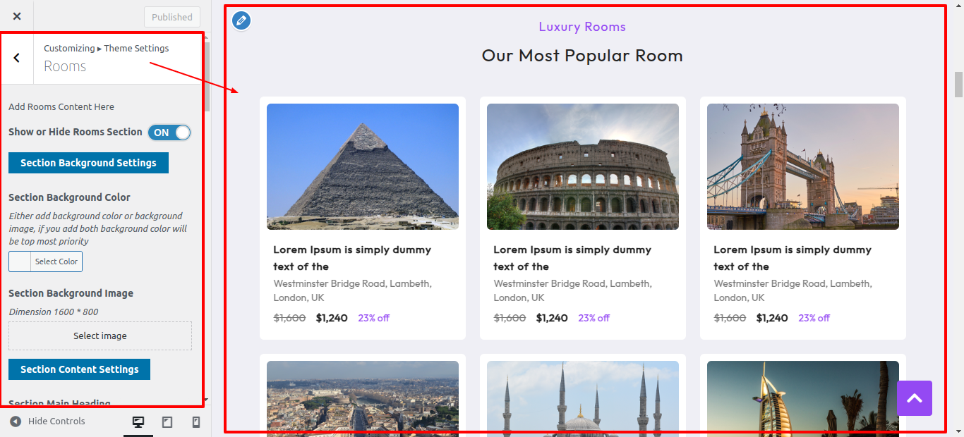 Second Move ~ Refer to the "Dashboard" ~> then pick "Appearance" ~> afterwards "Customizing" ~> then Jump to "Theme Settings" ~> and finally arrive at the "Rooms" ~> simply press "Published" .