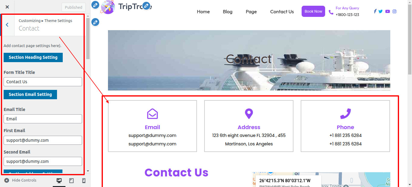 Second Move ~ Refer to the "Dashboard" ~> then pick "Appearance" ~> afterwards "Customizing" ~> then Jump to "Theme Settings" ~> and finally arrive at the "Contact Page" ~> simply press "Published" .
