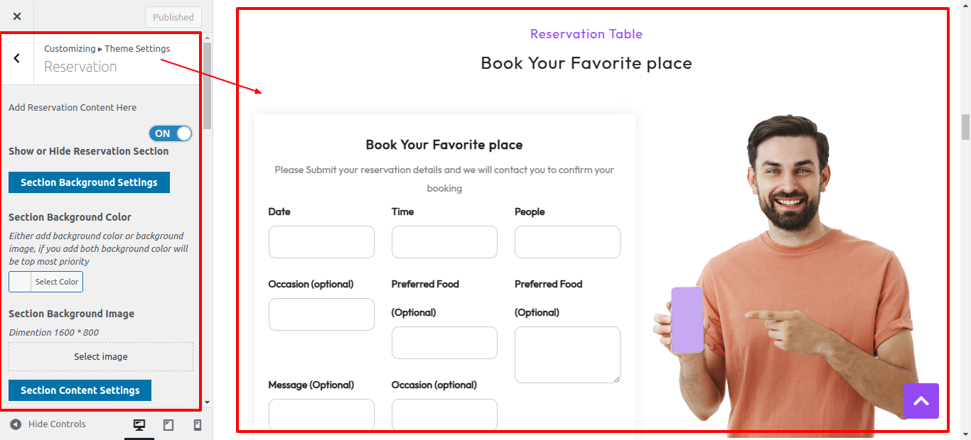 First Move ~ Refer to the "Dashboard" ~> then pick "Appearance" ~> afterwards "Customizing" ~> then Jump to "Theme Settings" ~> and finally arrive at the "Reservation" ~> simply press "Published" .