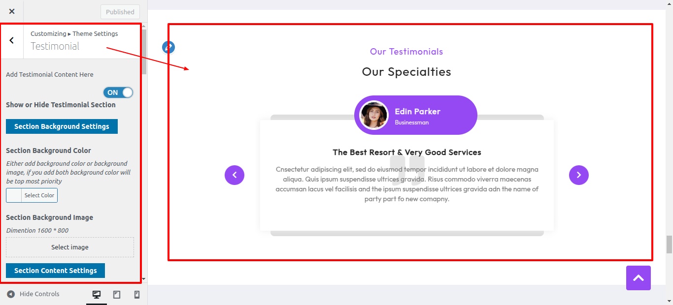 First Move ~ Refer to the "Dashboard" ~> then pick "Appearance" ~> afterwards "Customizing" ~> then Jump to "Theme Settings" ~> and finally arrive at the "Testimonial" ~> simply press "Published" .