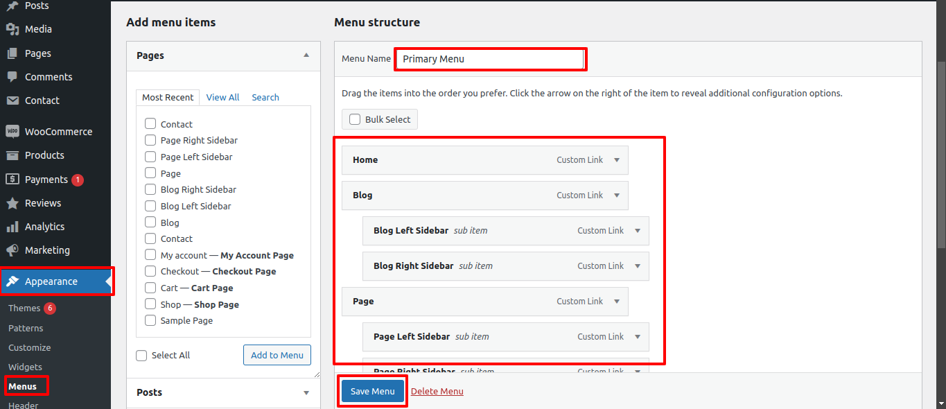 - Proceed to Appearance and opt for Menu.