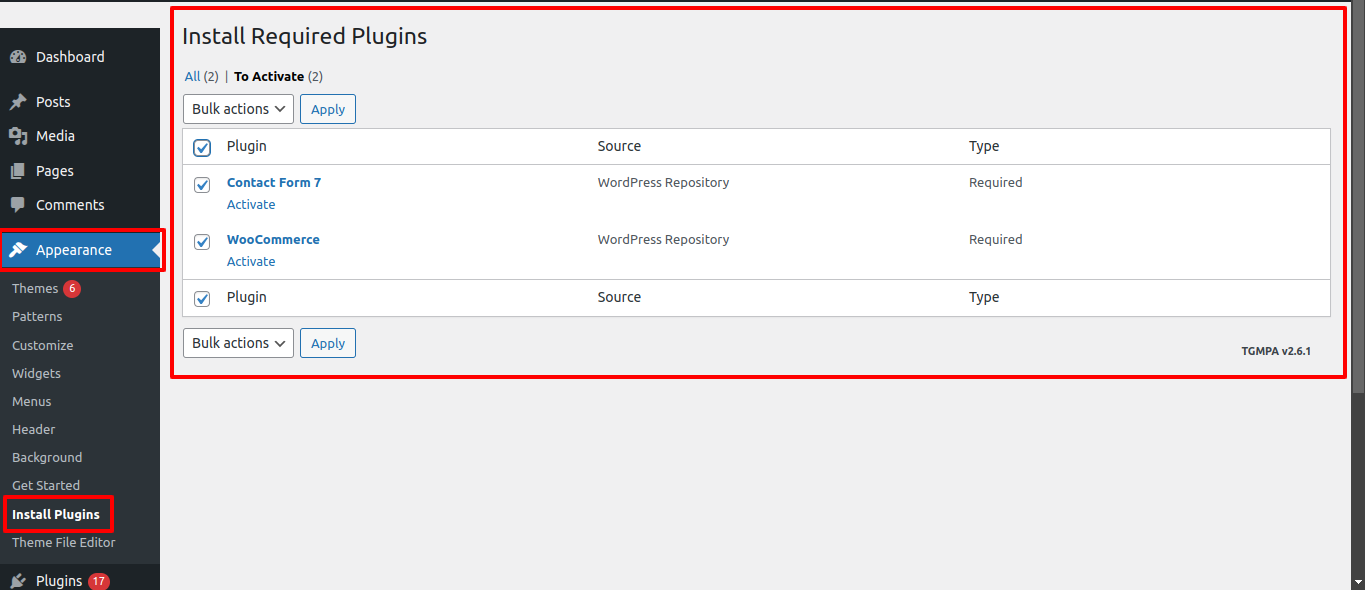 First Move ~ Refer to the "Dashboard" ~> then pick "Appearance" ~> afterwards "Install Plugins" ~> then Jump to "Select all Plugins" ~> and finally arrive at the "Install" ~> simply press "Activate" .