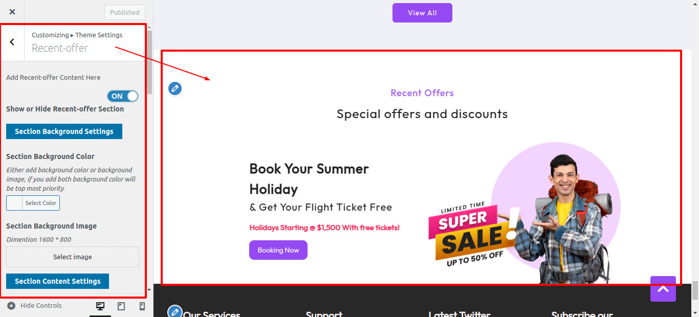 First Move ~ Refer to the "Dashboard" ~> then pick "Appearance" ~> afterwards "Customizing" ~> then Jump to "Theme Settings" ~> and finally arrive at the "Recent-offer" ~> simply press "Published" .