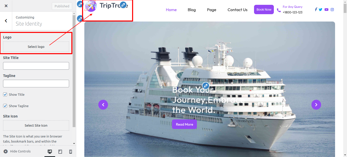 First Move ~ Refer to the "Dashboard" ~> then pick "Appearance" ~> afterwards "Customizing" ~> and finally arrive at the "Site Identity" ~> simply press "Published" .