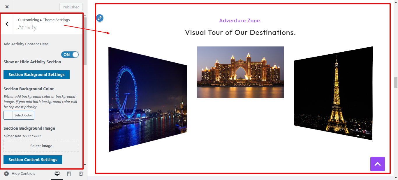 First Move ~ Refer to the "Dashboard" ~> then pick "Appearance" ~> afterwards "Customizing" ~> then Jump to "Theme Settings" ~> and finally arrive at the "Activity" ~> simply press "Published" .
