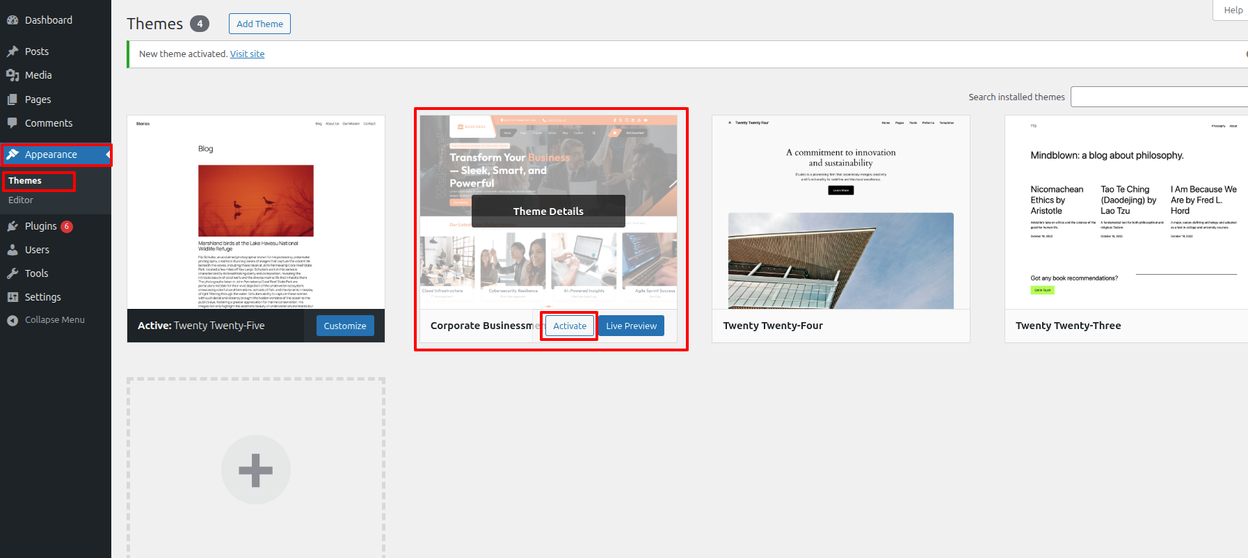 First Move ~ Utilizing the WordPress Dashboard to activate the chosen theme Go into your site's WordPress Admin and log in as administrator to start the installation phase. Further, Push on