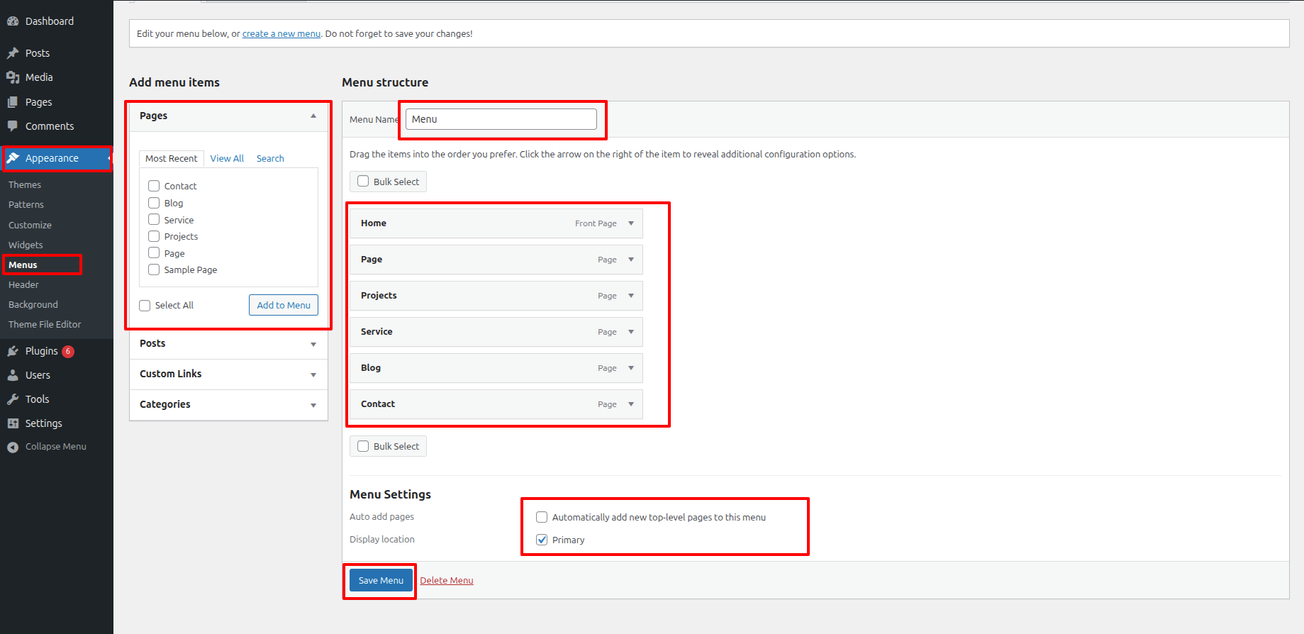 - Proceed to Appearance and opt for Menu.