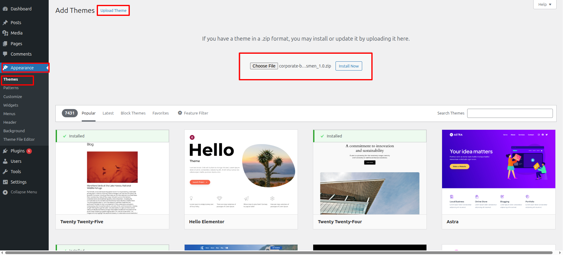 As a final resort, you can use the FTP method to upload. primarily open your FTP customer, sign in, and explore the files to find wp-content beforehand deciding a theme. Afterwards, import the theme files to your personal computer and unzip them. subsequently transfer the file you extracted themes file to your server's "themes" file. The freshly downloaded template ought to be visible in the "Appearance" part within your the WordPress platform Dashboard after the upload is finished..