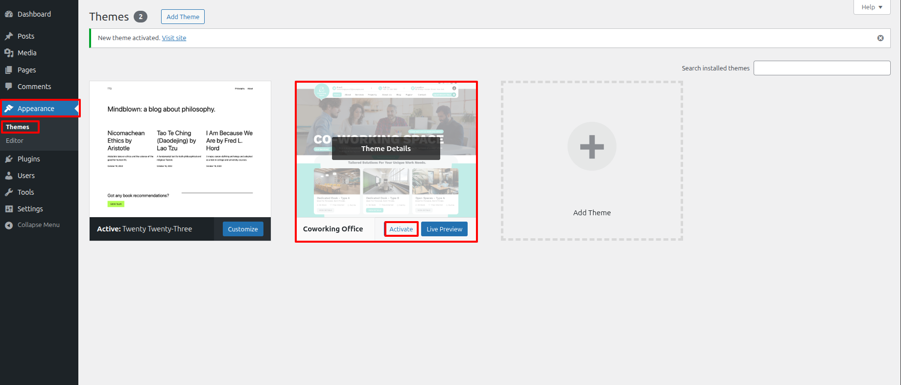 First Move ~ Utilizing the WordPress Dashboard to activate the chosen theme Go into your site's WordPress Admin and log in as administrator to start the installation phase. Further, Push on