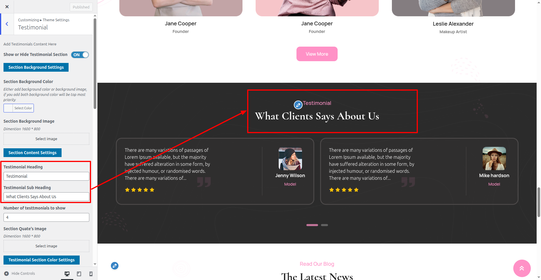 Second Move ~ Refer to the "Dashboard" ~> then pick "Appearance" ~> afterwards "Customizing" ~> then Jump to "Theme Settings" ~> and finally arrive at the "Testimonial Section" ~> simply press "Published" .