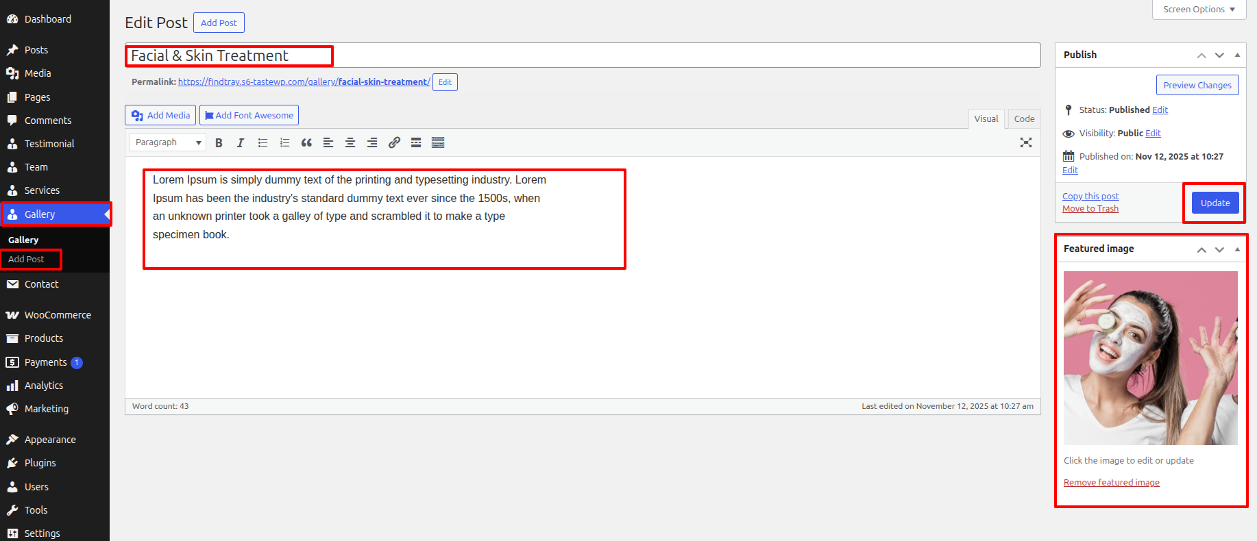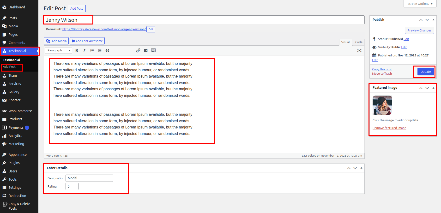 First Move ~ Refer to the "Dashboard" ~> then pick "Testimonial" ~> and finally arrive at the "Add Posts" .