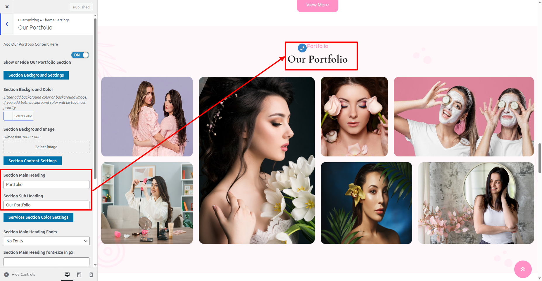 Second Move ~ Refer to the "Dashboard" ~> then pick "Appearance" ~> afterwards "Customizing" ~> then Jump to "Theme Settings" ~> and finally arrive at the "Our Portfolio" ~> simply press "Published" .