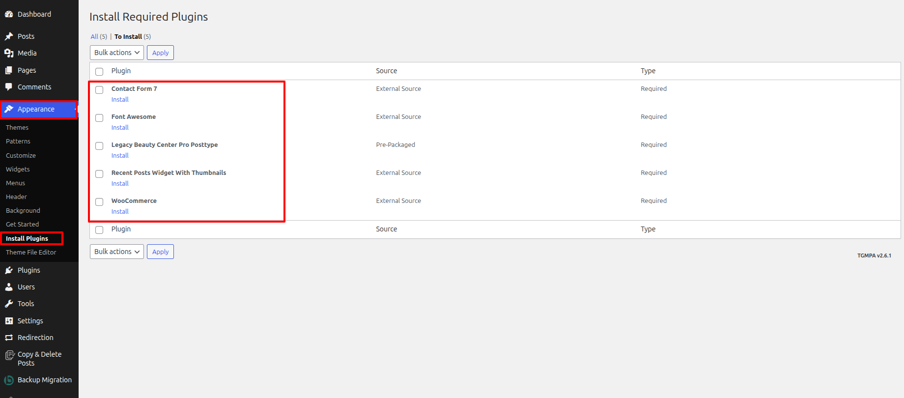First Move ~ Refer to the "Dashboard" ~> then pick "Appearance" ~> afterwards "Install Plugins" ~> then Jump to "Select all Plugins" ~> and finally arrive at the "Install" ~> simply press "Activate" .