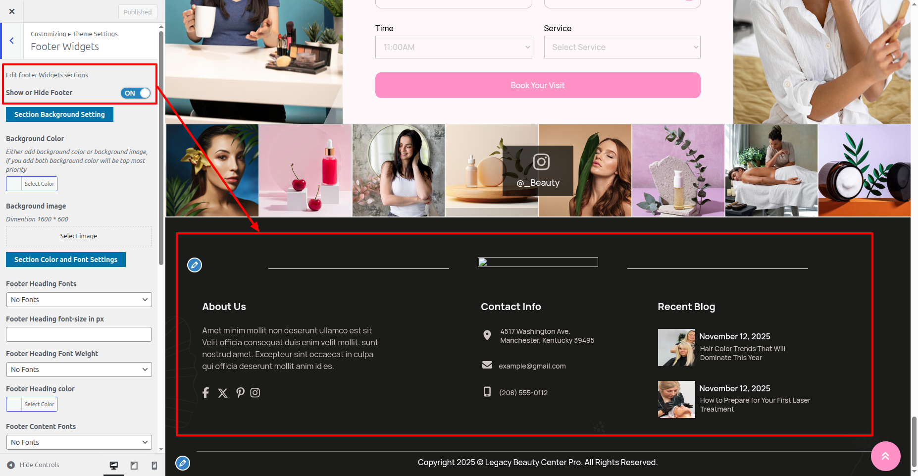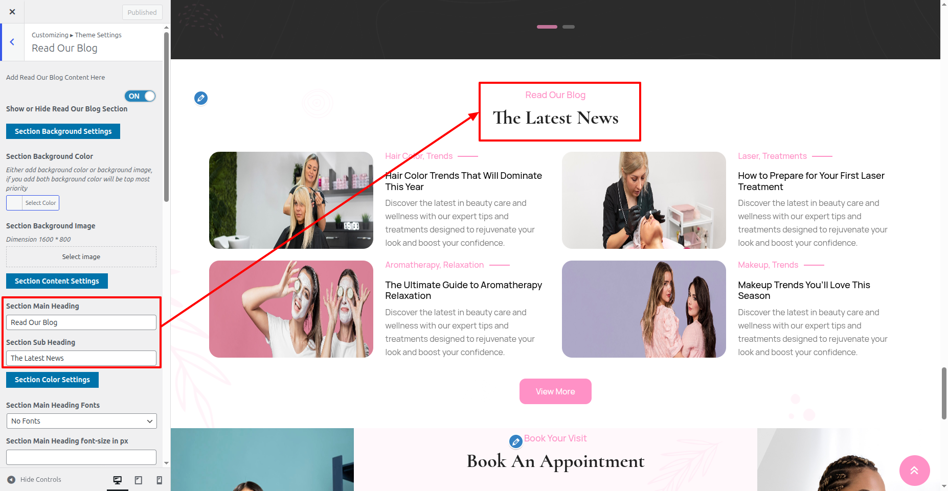 Second Move ~ Refer to the "Dashboard" ~> then pick "Appearance" ~> afterwards "Customizing" ~> then Jump to "Theme Settings" ~> and finally arrive at the "Book An Appointment" ~> simply press "Published" .