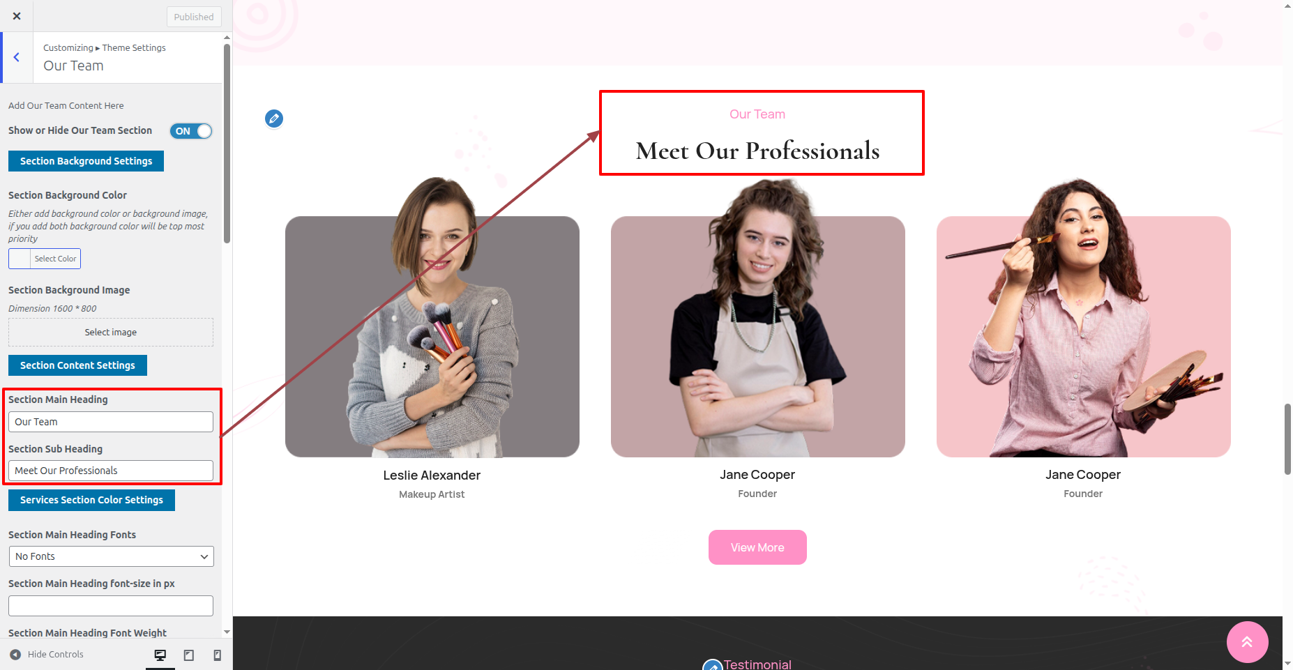 Second Move ~ Refer to the "Dashboard" ~> then pick "Appearance" ~> afterwards "Customizing" ~> then Jump to "Theme Settings" ~> and finally arrive at the " Our Team" ~> simply press "Published" .