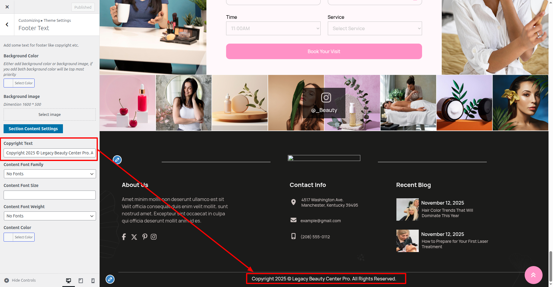 First Move ~ Refer to the "Dashboard" ~> then pick "Appearance" ~> afterwards "Customizing" ~> then Jump to "Theme Settings" ~> and finally arrive at the "About Our Salon" ~> simply press "Published" .