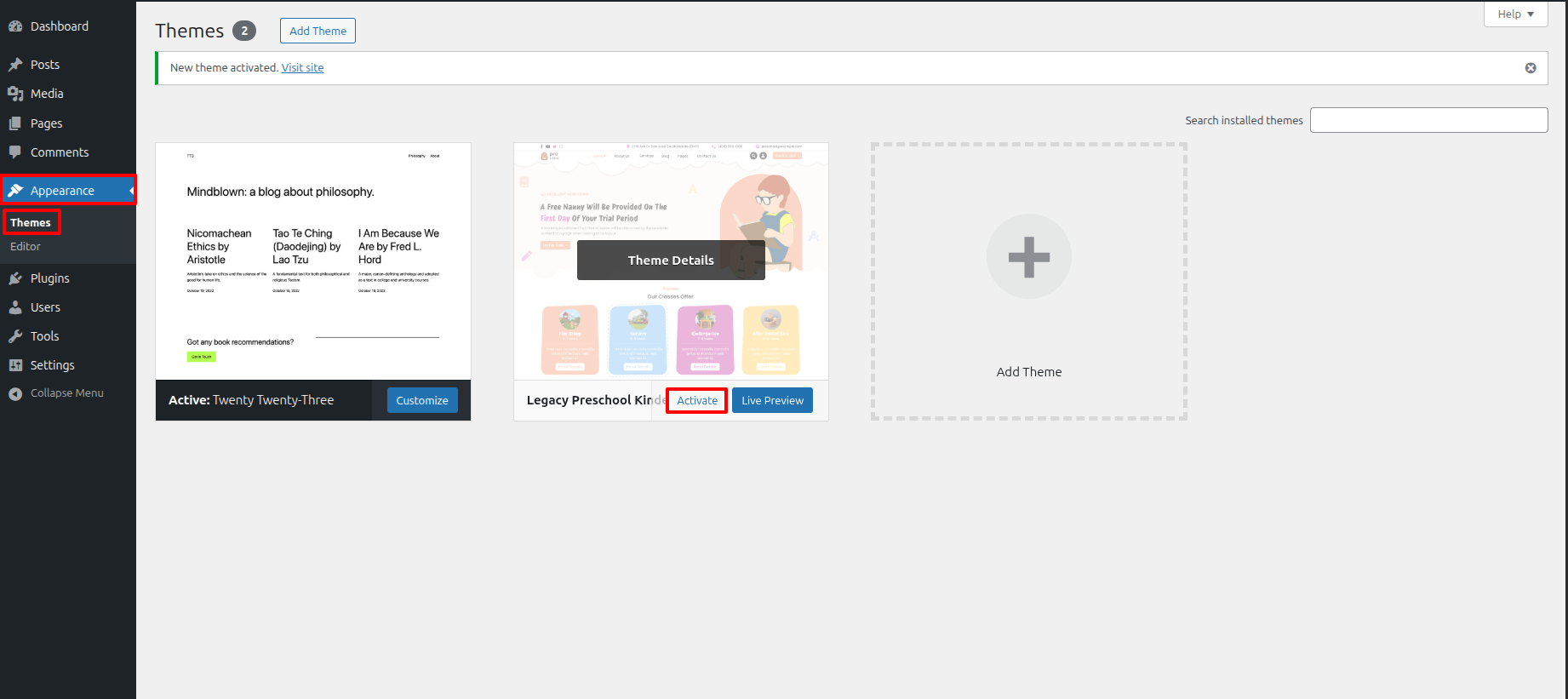 First Move ~ Utilizing the WordPress Dashboard to activate the chosen theme Go into your site's WordPress Admin and log in as administrator to start the installation phase. Further, Push on