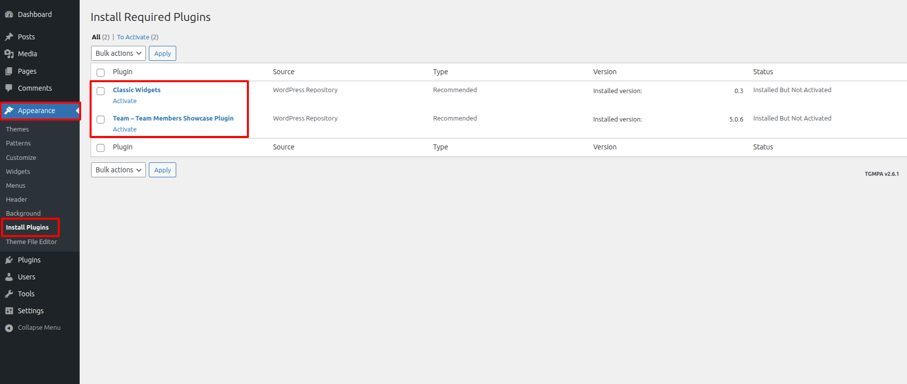 First Move ~ Refer to the "Dashboard" ~> then pick "Appearance" ~> afterwards "Install Plugins" ~> then Jump to "Select all Plugins" ~> and finally arrive at the "Install" ~> simply press "Activate" .