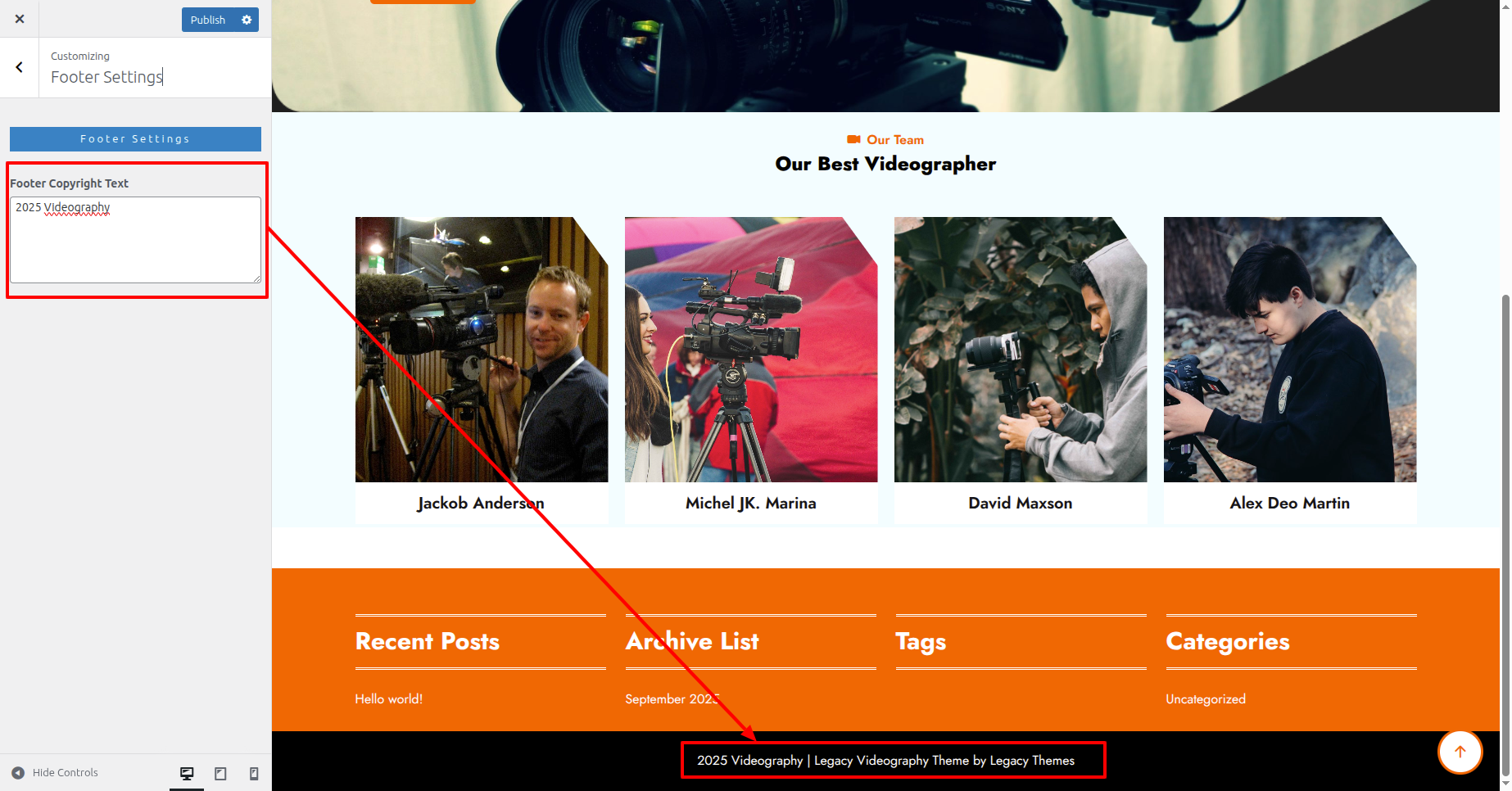 First Move ~ Refer to the "Dashboard" ~> then pick "Appearance" ~> afterwards "Customizing" ~> and finally arrive at the "Footer Settings" ~> simply press "Published" .