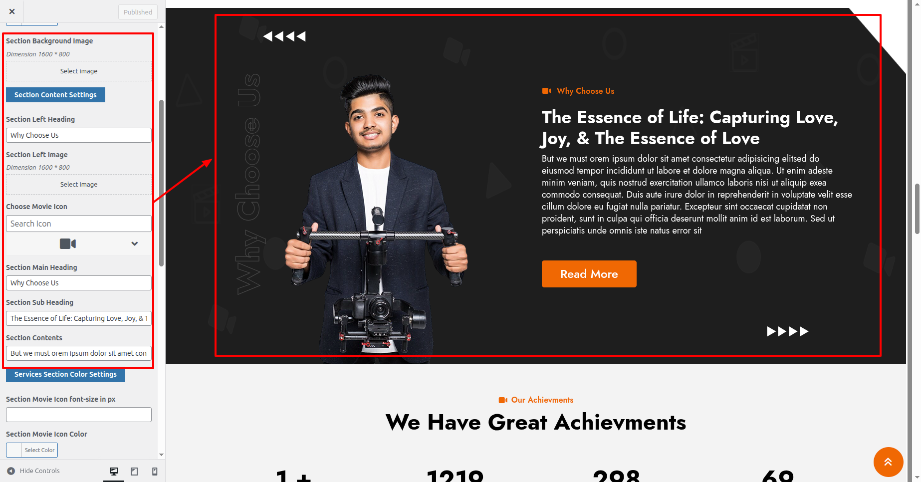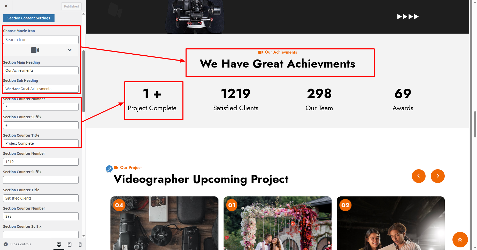 First Move ~ Refer to the "Dashboard" ~> then pick "Appearance" ~> afterwards "Customizing" ~> then Jump to "Theme Settings" ~> and finally arrive at the "Our Achievments Section" ~> simply press "Published" .
