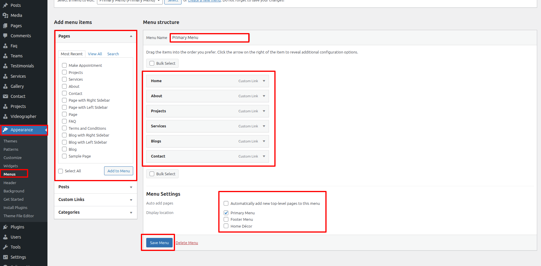 - Proceed to Appearance and opt for Menu.