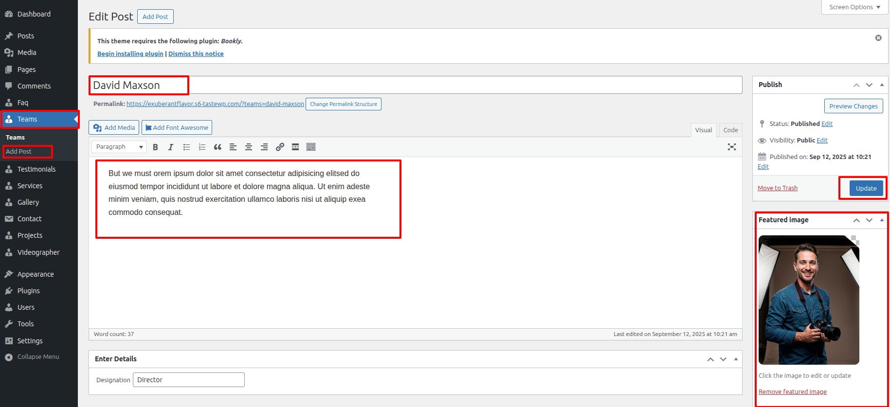 Second Move ~ Refer to the "Dashboard" ~> then pick "Appearance" ~> afterwards "Customizing" ~> then Jump to "Theme Settings" ~> and finally arrive at the "Teams" ~> simply press "Published" .