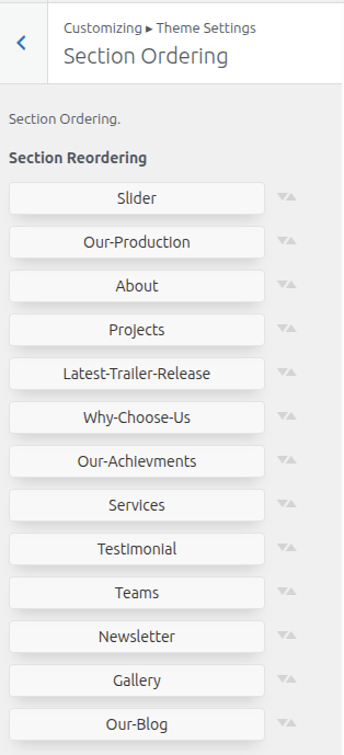 First Move ~ Refer to the "Dashboard" ~> then pick "Appearance" ~> afterwards "Customizing" ~> then Jump to "Theme Settings" ~> and finally arrive at the "Section Reorder" ~> simply press "Published" .