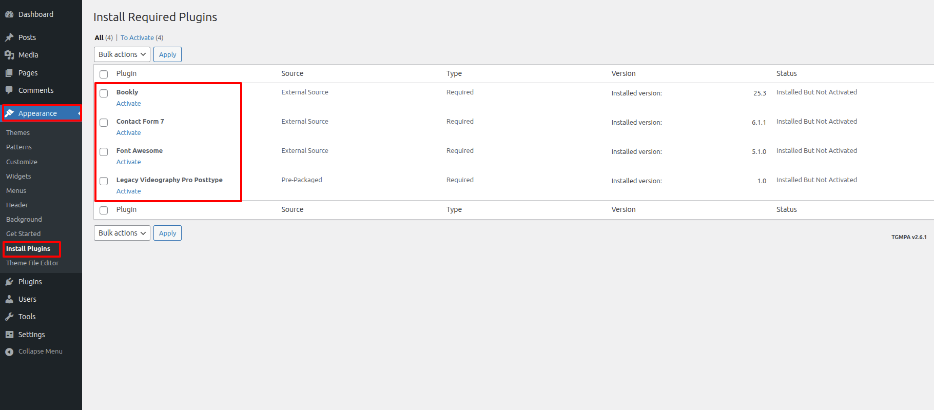 First Move ~ Refer to the "Dashboard" ~> then pick "Appearance" ~> afterwards "Install Plugins" ~> then Jump to "Select all Plugins" ~> and finally arrive at the "Install" ~> simply press "Activate" .