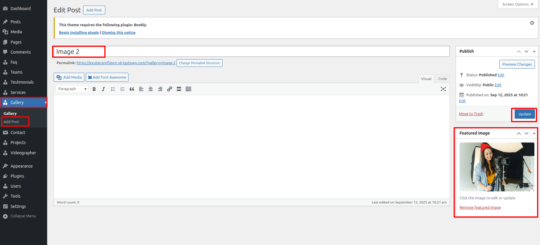 Second Move ~ Refer to the "Dashboard" ~> then pick "Appearance" ~> afterwards "Customizing" ~> then Jump to "Theme Settings" ~> and finally arrive at the "Our Gallery Section" ~> simply press "Published" .