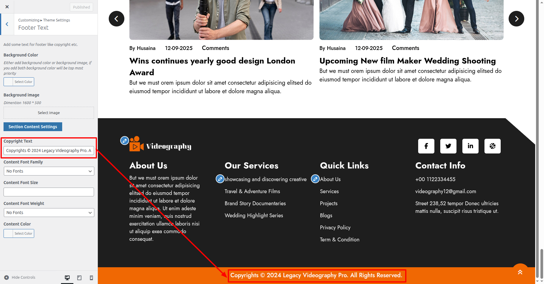 First Move ~ Refer to the "Dashboard" ~> then pick "Appearance" ~> afterwards "Customizing" ~> then Jump to "Theme Settings" ~> and finally arrive at the "Footer Text" ~> simply press "Published" .