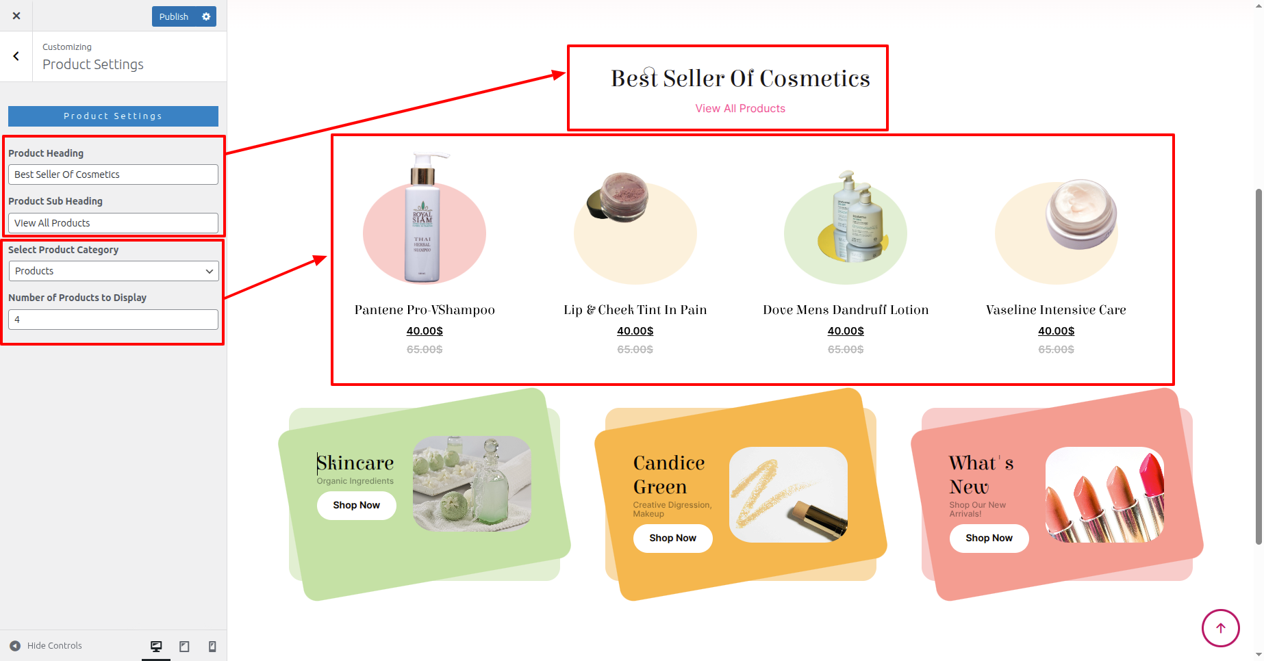 Next Move ~ Refer to the "Dashboard" ~> then pick "Appearance" ~> afterwards "Customizing" ~> and finally arrive at the "Product Settings" ~> simply press "Published" .