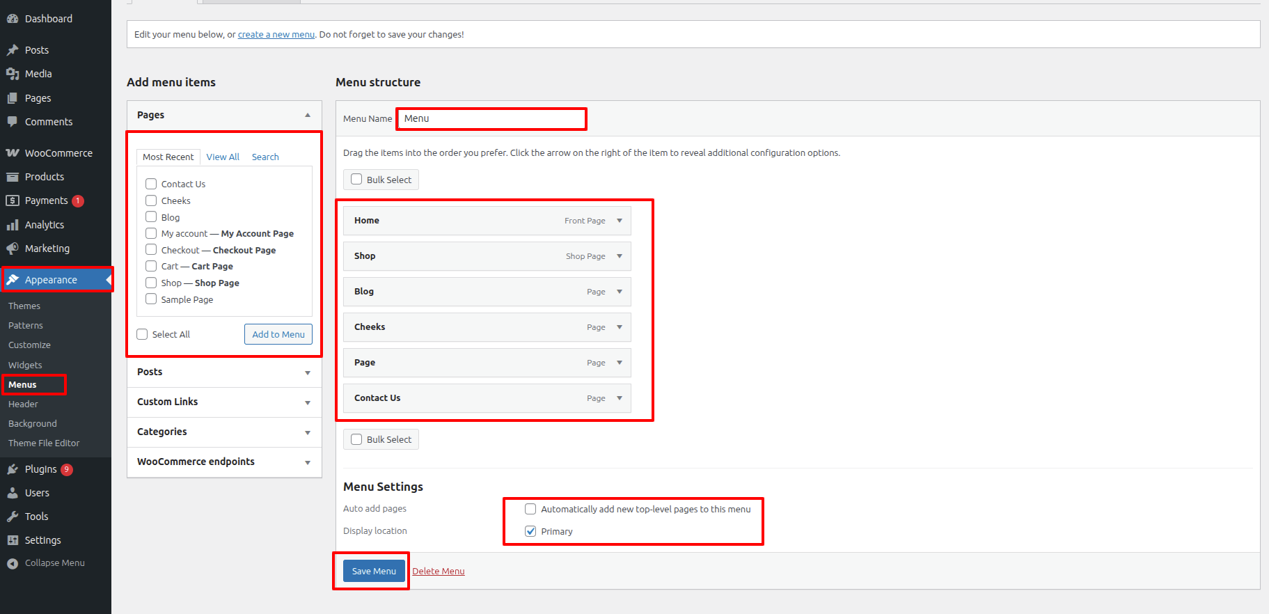 - Proceed to Appearance and opt for Menu.