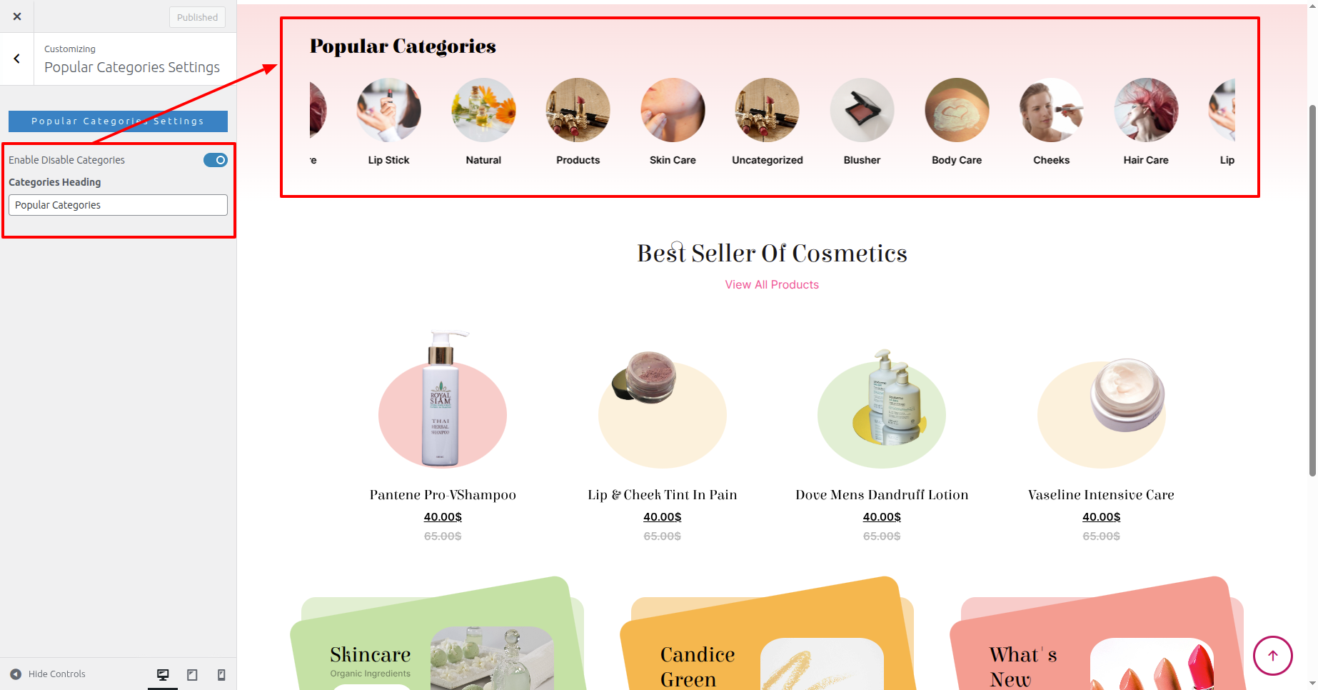 Next Move ~ Refer to the "Dashboard" ~> then pick "Appearance" ~> afterwards "Customizing" ~> and finally arrive at the "Popular Categories Settings" ~> simply press "Published" .