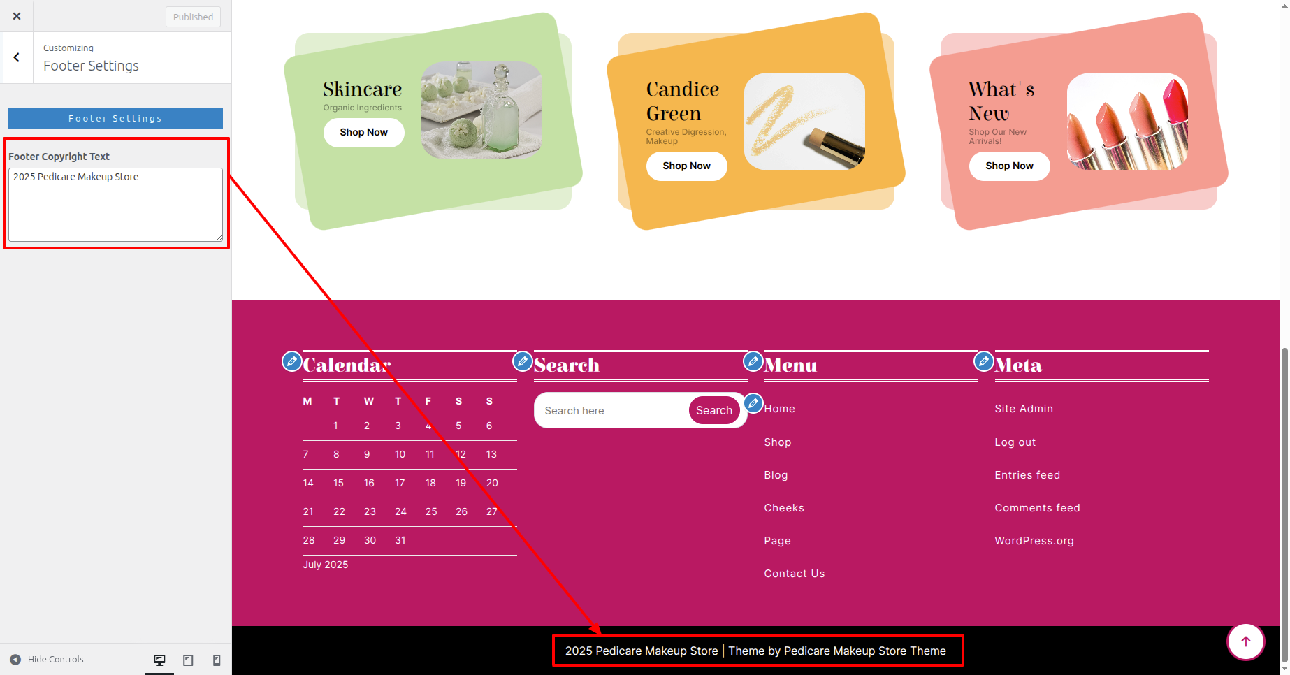 First Move ~ Refer to the "Dashboard" ~> then pick "Appearance" ~> afterwards "Customizing" ~> and finally arrive at the "Footer Settings" ~> simply press "Published" .
