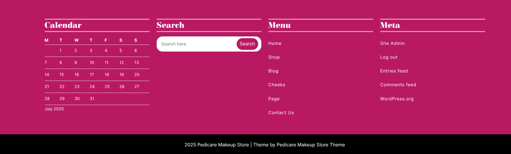 - Refer to a Primary Menu a box to position the menu into the footer.