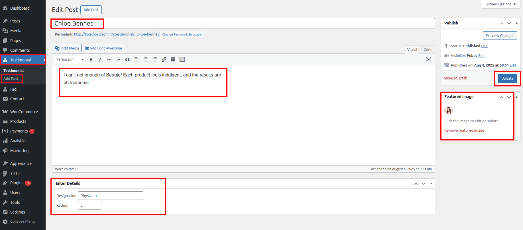 First Move ~ Refer to the "Dashboard" ~> then pick "Testimonial" ~> afterwards "Add Post" .