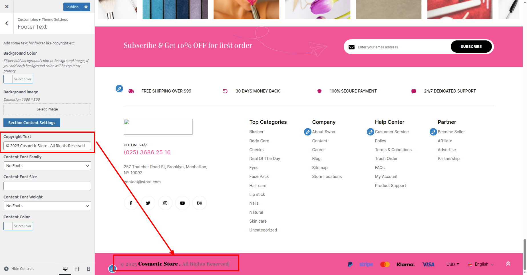 First Move ~ Refer to the "Dashboard" ~> then pick "Appearance" ~> afterwards "Customizing" ~> then Jump to "Theme Settings" ~> and finally arrive at the "Footer Text" ~> simply press "Published" .